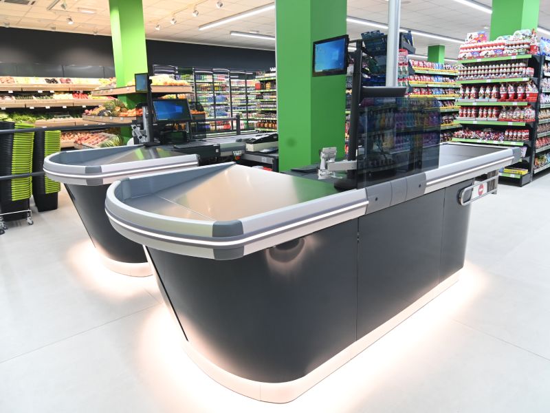 - DODATNA: Plexi, nosač POS terminala, nosač monitora, plexi za sitan novac, pedala, divajder u koritu, nosač štampača, zaštita skenera, LED osvetljenje u bamperu, LED osvetljenje u bazi, LED indikator otvoreno-zatvoreno, stub za dovod struje, broj, dodatna polica u bazi, fioka za novac, žičana korpa za kese, LED plexi, utičnice, kapija zatvoreno, centralni deo sa ili bez otvora, letvica sledeći