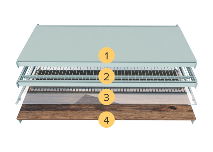 Delovi sistema P50 su od plastificiranog metala, napravljeni da se sklapaju brzo i bez alata. Optimalno izlaganje proizvoda, dobra vidljivost i dostupnost podižu prodaju!